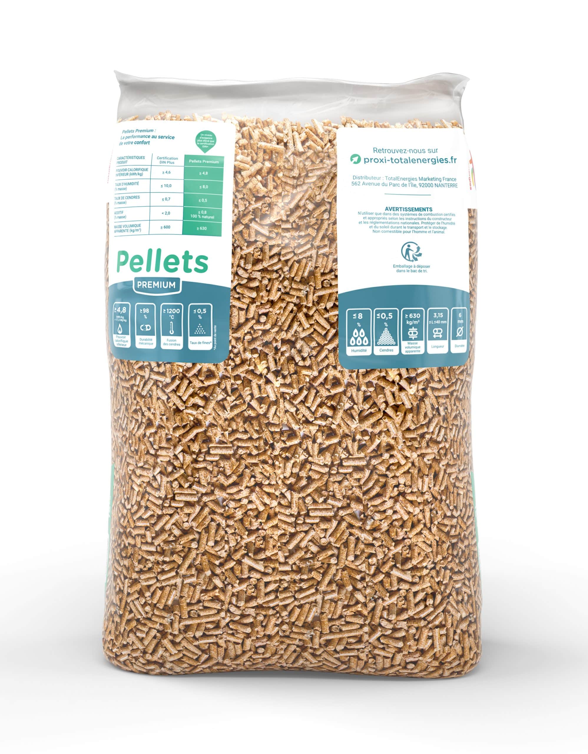 Les Pellets Premium de TotalEnergies sont conditionnés en sacs résistants de 15kg. Les granulés de bois Pellets Premium de TotalEnergies sont conçus pour vous garantir un fort pouvoir calorifique et maximiser le rendement de votre poêle ou insert à granulés. Le faible taux d’humidité vous permet de réduire votre consommation de pellets et de moins encrasser votre installation. Vous nettoierez moins souvent votre vitre et votre cendrier.